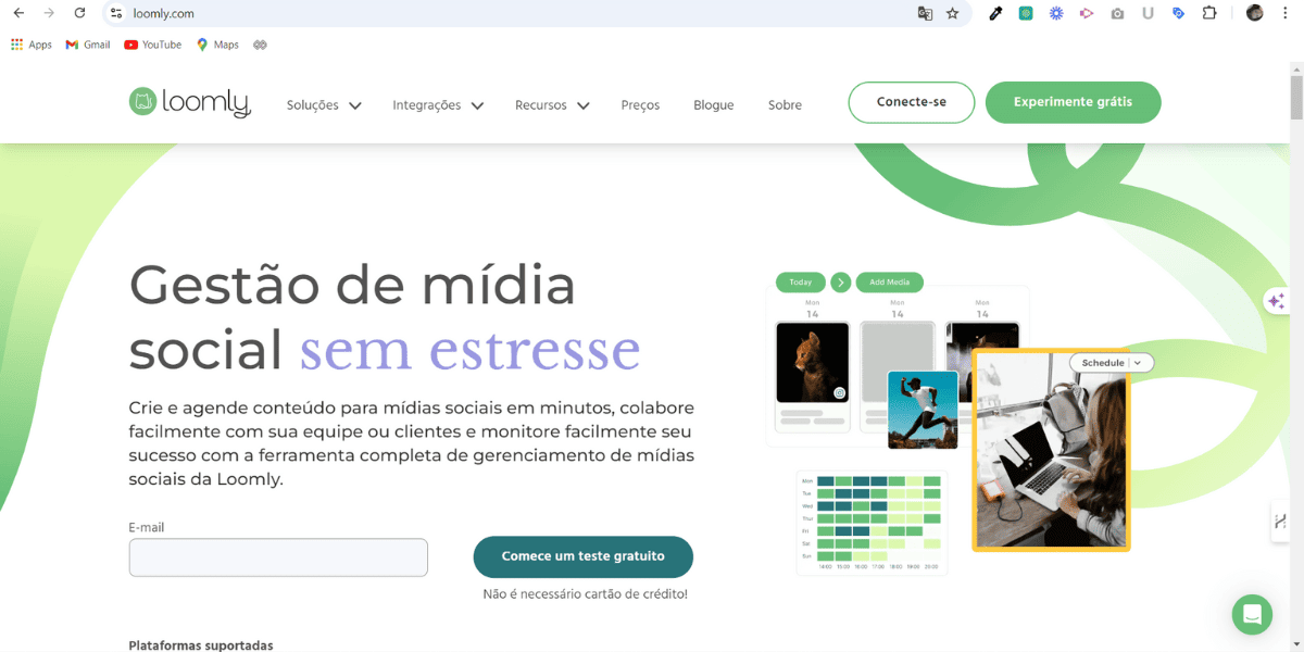 – O primeiro passo é acessar o site do *Loomly* e criar sua conta. Eles oferecem um período de teste gratuito, então você pode explorar a ferramenta antes de decidir investir.